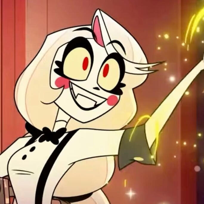 Vox is one individual who has crossed her radar more often than the other two. Mostly for his involvement in trying to use Sir Pentious as a spy, as well as his attempts to get camera's into the hotel.She is also very aware of the nasty beef between him and Alastor. Although from her point of view Vox's behaviour is like a overly disgruntled toxic ex of Alastor's (whether he is an ex or not, she doesn't know).She views Vox as a power hungry superficial shit-talker.